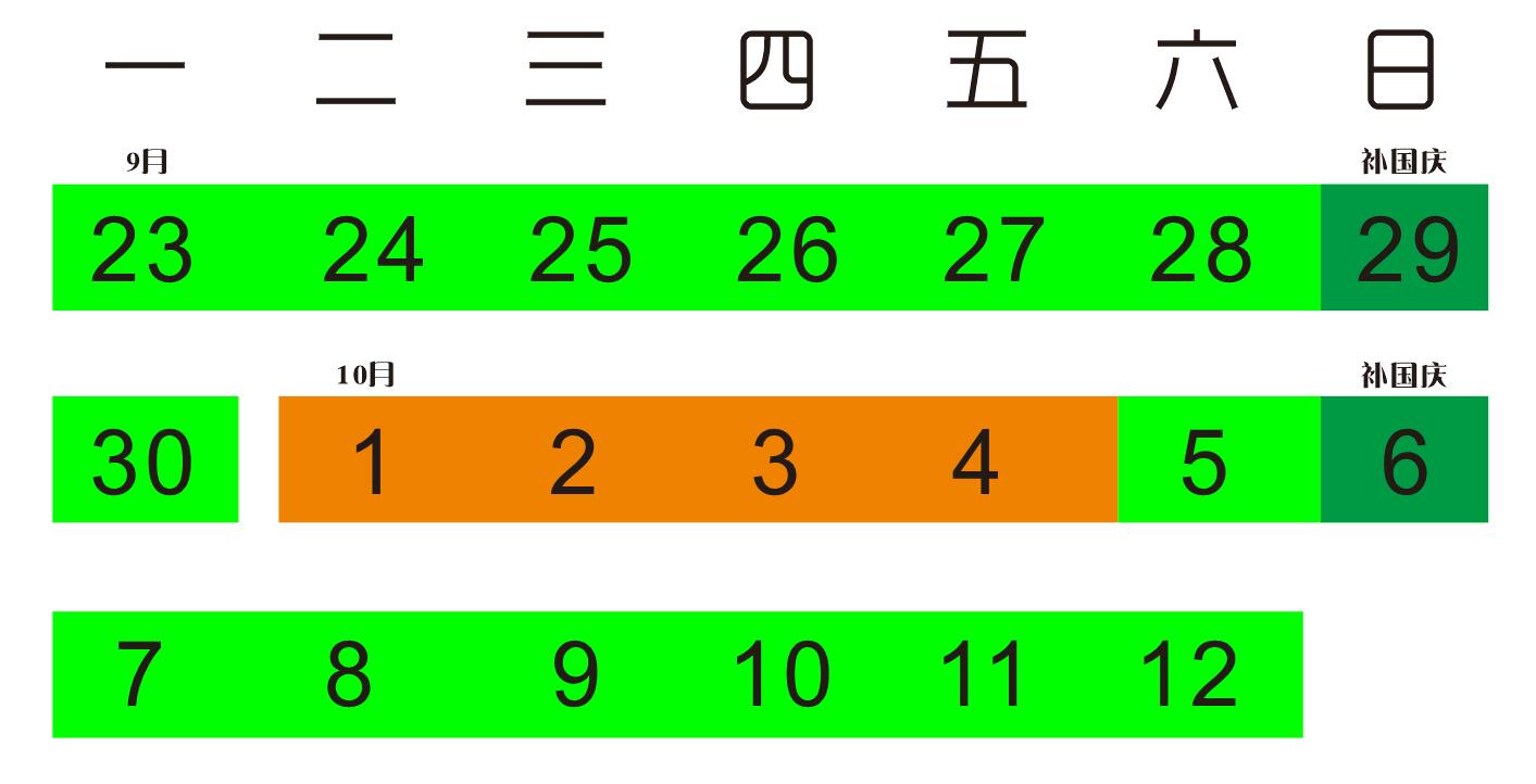 為了盡可能減小假期對學習造成的影響,正式假期的時間原定為兩天,也就是10月1-2日,最后商量決定,通過前后周末的補課,我們一起湊了4天假期,也就是放假時間為10月1-4日。